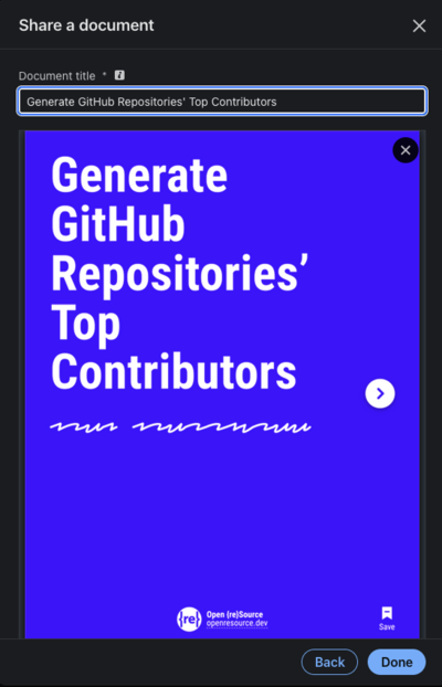 - Select your PDF file, choose a document title, and LinkedIn will convert it into a carousel.